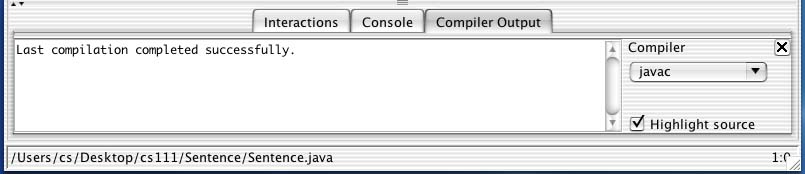 Now find the folder Sentence which you downloaded earlier with Fetch, and open the file Sentence.java.