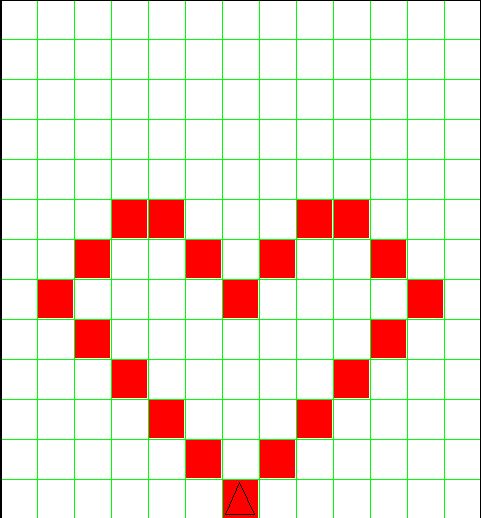 Now, write a new program called Heart.java to draw the red heart. Note the buggle's
