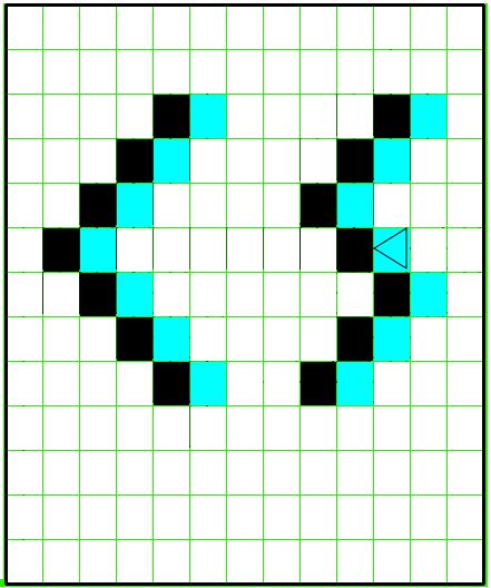 Now you're all ready to write your first BuggleWorld program! The goal is to write "CS" as shown below.