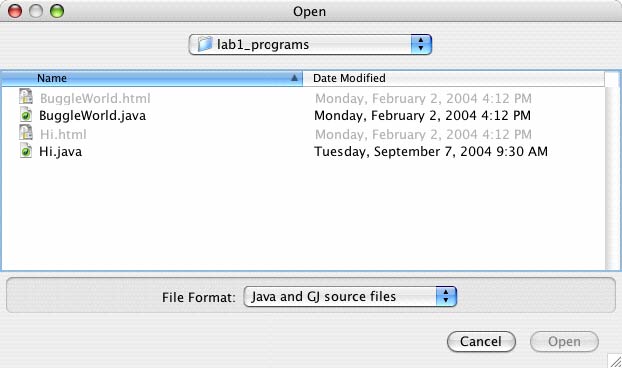 - Now let's open our first Java file. Click on the button labeled "Open" in the toolbar at the top of the window.