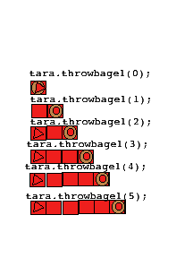 Results of asking tara to throw bagels at distances of 0,1,2,3,4 and 5: