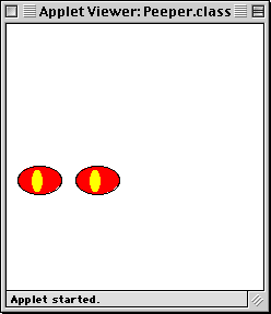To draw correctly to the applet's Canvas, the Eyes object needs to have access to the Graphics object from the paint method. The easiest way to do this is to use a parameter in the constructor method (this is the "Graphics g" parameter in the method definition). The Eyes object can keep track of this object by assigning its value to the "gfx" instance variable, as follows: