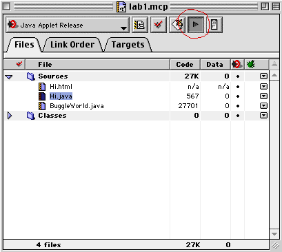 - If your program does not have errors, choosing Run will start Apple Applet Runner