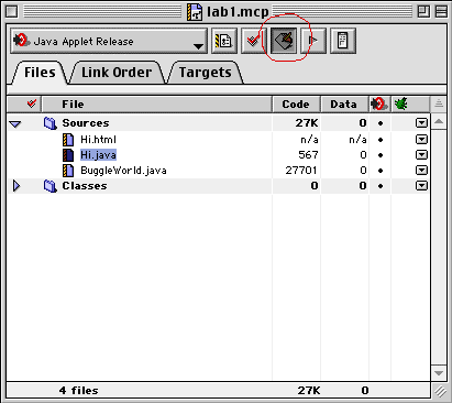 applications and applets, and some other files. All files for a program are joined into a Code Warrior project. Each project has a "master" file, we