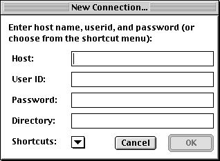 Never leave a Fetch connection open on public Macs after you leave! If you do, you are exposing your account to anyone who happens to sit at the same machine after you. If you see someone else's open Fetch window on a public Mac, please immediately close it. You can select File--> Close or press Apple-W to close a connection without quitting Fetch.